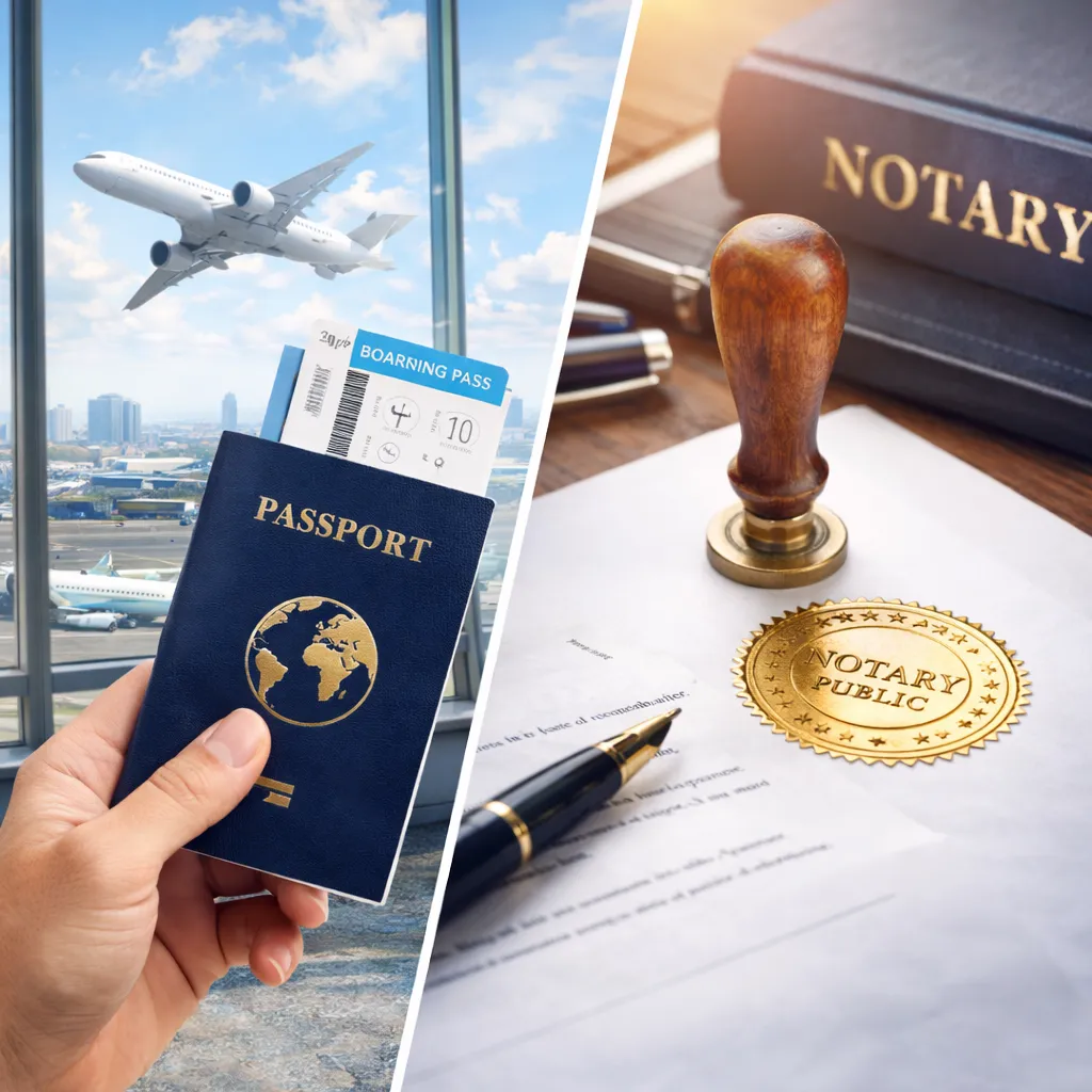 Emisión de boletos aéreos a cualquier destino y servicios de Notary Public para documentación y trámites oficiales.